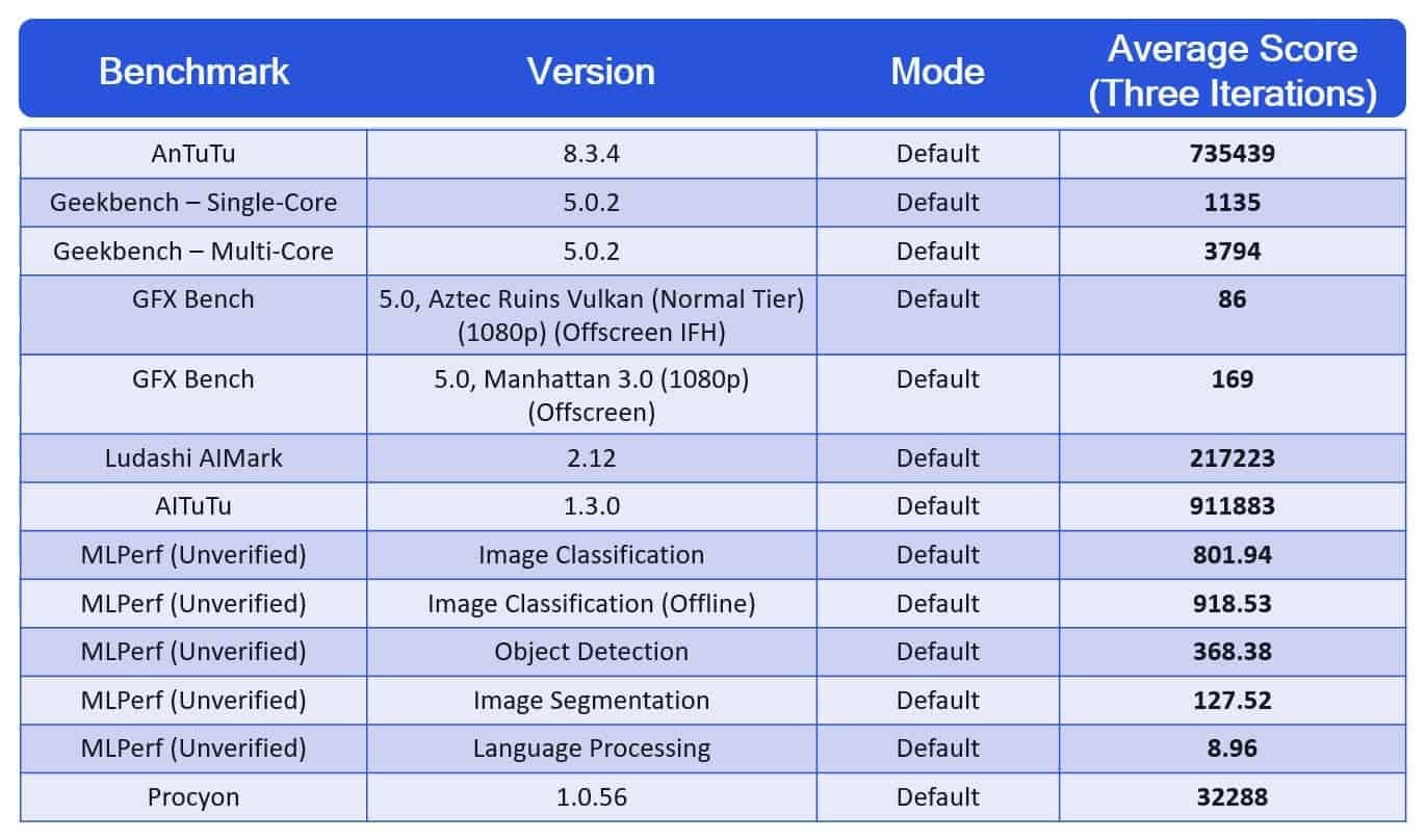 Qualcomm также предоставила результаты Snapdragon 888 в GFXBench 5.0 и других бенчмарках, результаты в которых показаны в таблице.