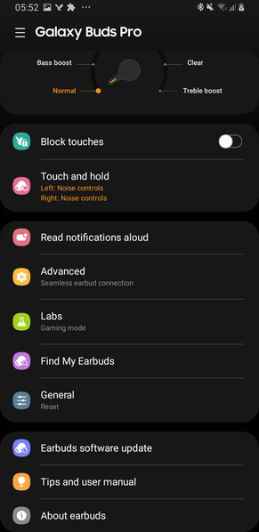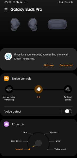 Для Galaxy Buds Pro предусмотрено три режима работы: активное шумоподавление, обычный режим и режим «звуковой прозрачности», когда в уши транслируется звук окружающей обстановки. Но в этом нет ничего нового, как нет ничего нового и в эквалайзере с шестью предустановками.