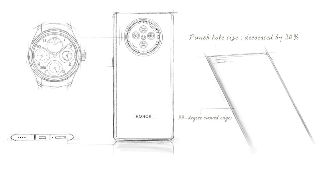 Основная камера Honor V40 выполнена в большом круглом блоке подобно тому, как это реализовано в Mate 40. Однако если в случае Huawei Mate 40 мы видим камеру-«пончик», то Honor V40 получил камеру-«часы». Очевидно, дизайнеры вдохновлялись классическими часами с хронографом. Дополнительное сходство с наручными часами добавляет имитация тахиметрической шкалы по внутреннему диаметру блока камеры. В данном случае уместно проводить параллели с Honor Magic Watch.