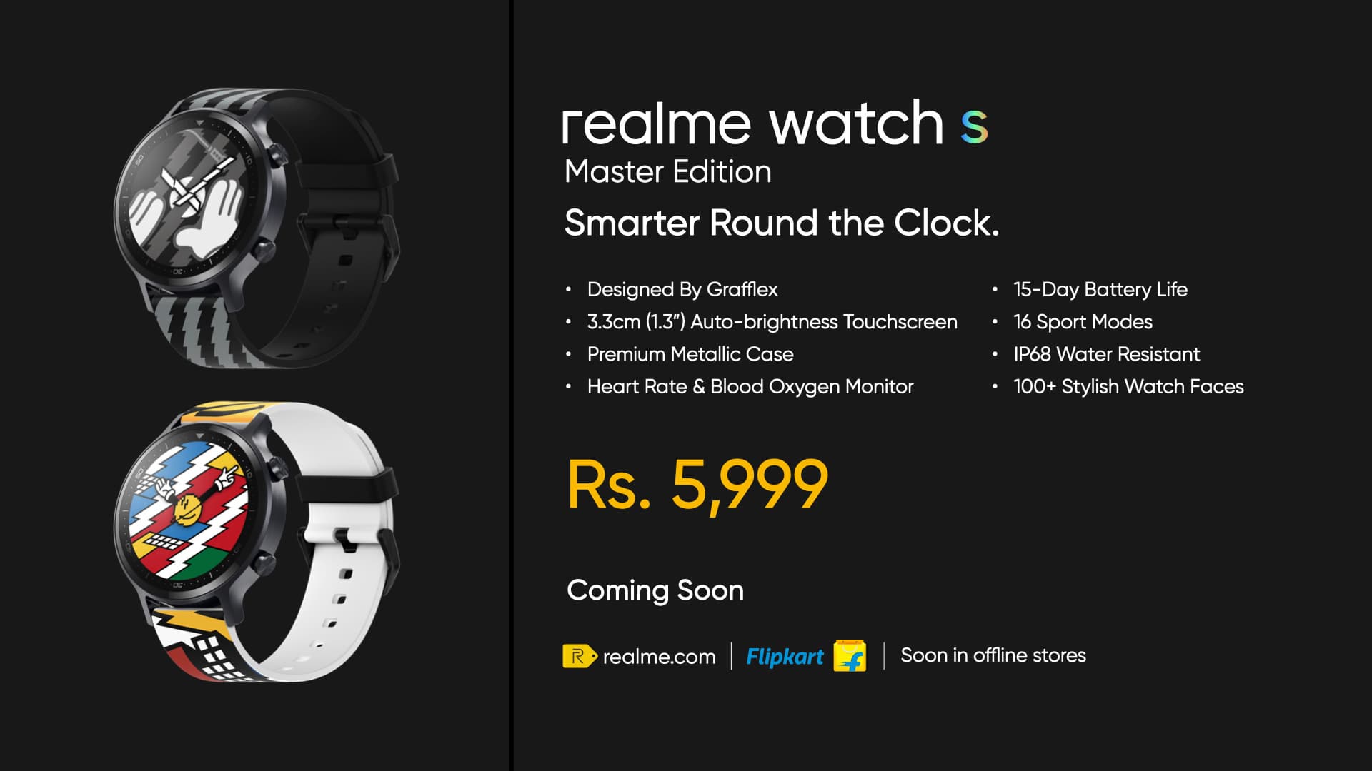 Компания Realme сегодня анонсировала в Индии умные часы Realme Watch S Pro, а также Realme Watch S, которые ранее были выпущены в Европе, и новую модель Realme Watch S Master Edition.