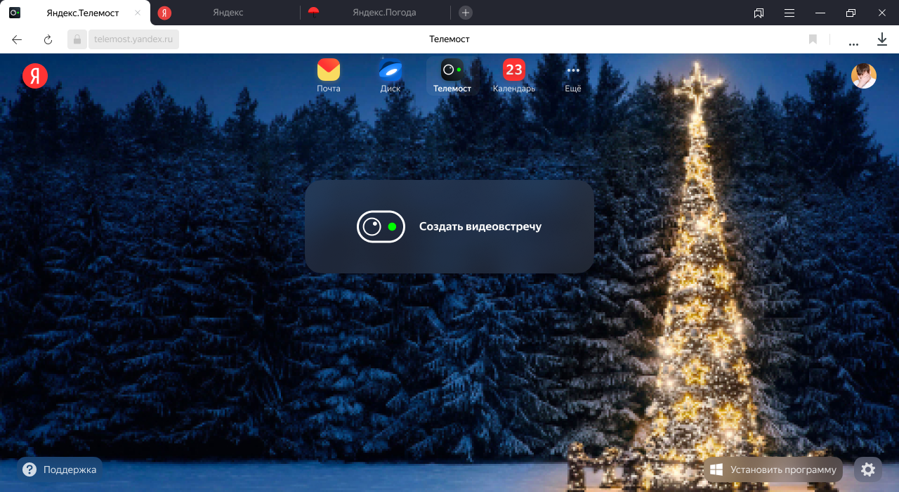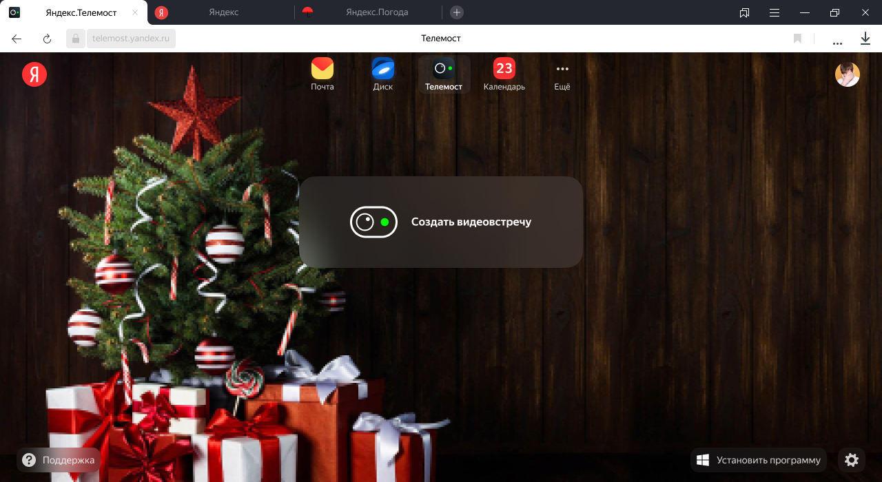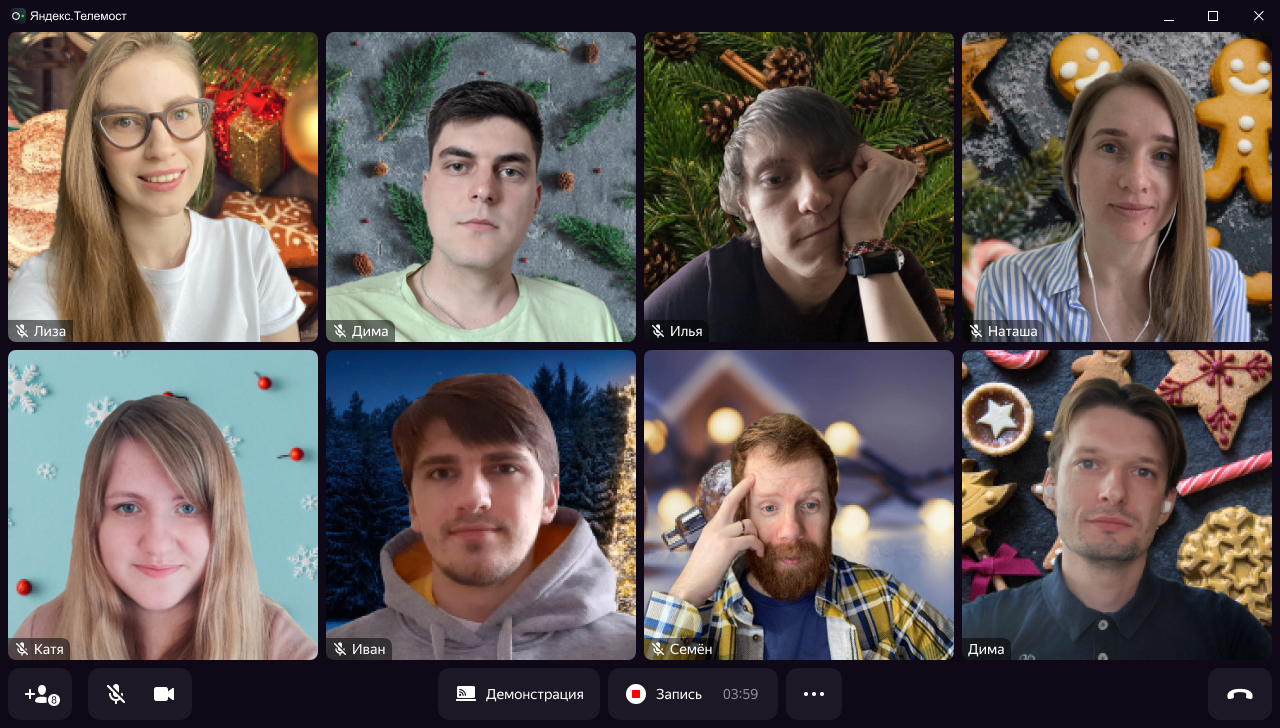 Запись встреч доступна в Яндекс.Почте 360 (в Яндекс.Браузере и Chrome) и в приложении Телемост для компьютера. Новогодние заставки и заглушки появились как в десктопной, так и веб-версии сервиса. А виртуальные фоны, как и раньше, можно найти в приложении для Mac и Windows. Кроме того, с недавнего времени Телемост работает не только в Яндекс.Браузере и Chrome, но и в Mozilla Firefox.