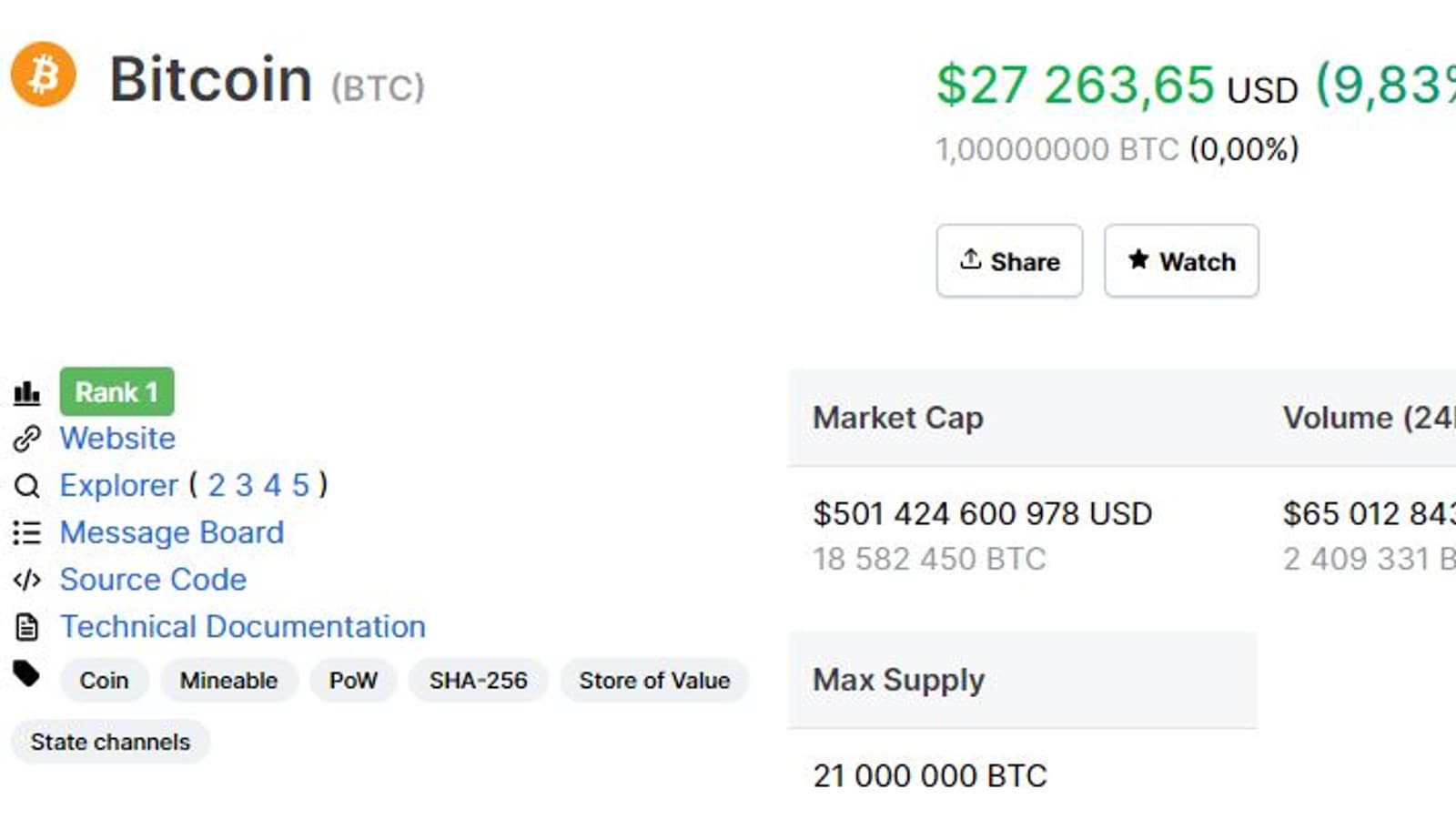 Главная криптовалюта мира продолжает усиленно дорожать. Еще вчера вечером она стоила около 25 500 долларов, а уже сегодня днем стоимость взлетела до 27 000 долларов. Более того, в пике стоимость превосходила отметку в 28 000 долларов!