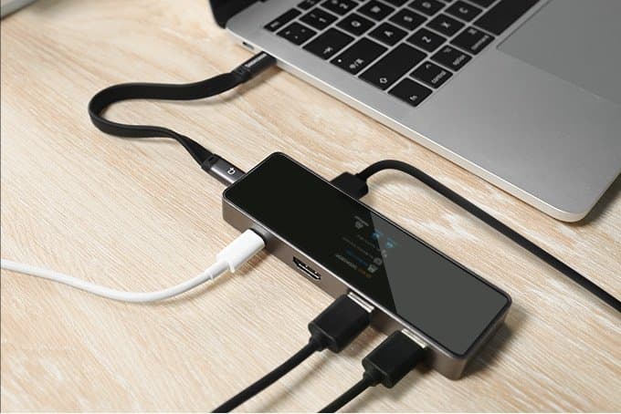 Участникам сбора средств предложено пять разновидностей: четыре из них — «7-в-1» с экранами размером 1,3 дюйма, а пятая — «9-в-1» с экраном размером 1,54 дюйма. Две модели «7-в-1» имеют встроенные кабели USB-C, две — отсоединяемые. Каждую пару образуют модели Smart Dock и Smart Dock Pro. У первых по HDMI можно вывести изображение 4К с кадровой частотой 30 Гц, у вторых — с частотой 60 Гц,