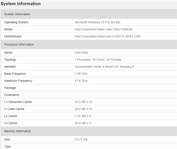 В бенчмарке, судя по всему, засветилась одна из топовых моделей серии: у нее 16 ядер и поддержка 24 потоков. Большие ядра — Golden Cove, малые — Gracemont. И тех, и других по 8, но многопоточность поддерживают только Golden Cove, поэтому суммарное количество потоков — 24.