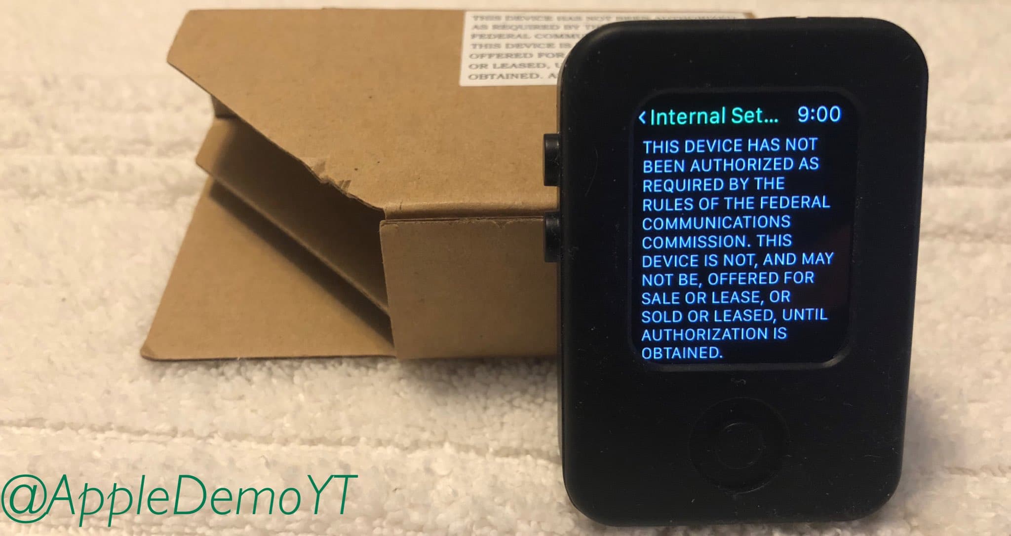 Судя по всему, прототип Apple Watch был помещён в специальный футляр, который скрывал настоящий дизайн устройства и предотвращал его от утечек. Данная версия лишена цифровой короны Digital Crown и имеет две кнопки на левой части корпуса, а также кнопку под экраном.