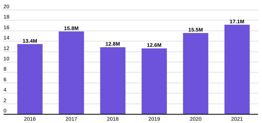 Для сравнения: в 2018 году продажи MacBook сократились по сравнению с 2017 годом с 15,8 млн штук до 12,8 млн штук, а в 2019 год — до 12,6 млн.