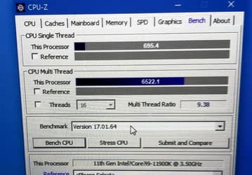 Результаты теста CPU-Z дают представление о производительности процессора Intel Core i9-11900K (Rocket Lake-S)