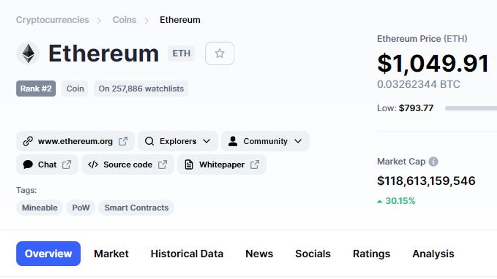 В новой реальности Etherium продается дороже $1000 — почти $1050 на момент написания новости и более $1150 в пике. За семь дней Etherium подорожала примерно на 50%.