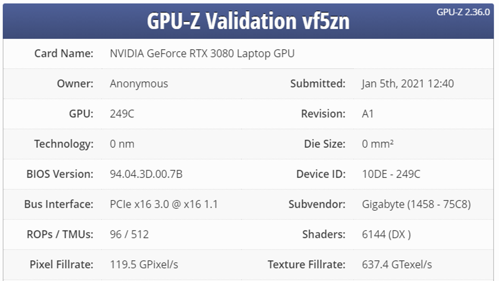 Источник уточнил и дополнил информацию о карте GeForce RTX 3080 Mobile. Это флагманская модель на графическом процессоре GA104 в полной конфигурации с 6144 ядрами CUDA. Это намного меньше 8704 ядер у настольной модели RTX 3080, но все же больше, чем 5888 ядер у настольной модели RTX 3070 на процессоре GA104. Таким образом, можно с уверенностью предположить, что настольный и мобильный варианты RTX 3080 будут различаться по производительности.