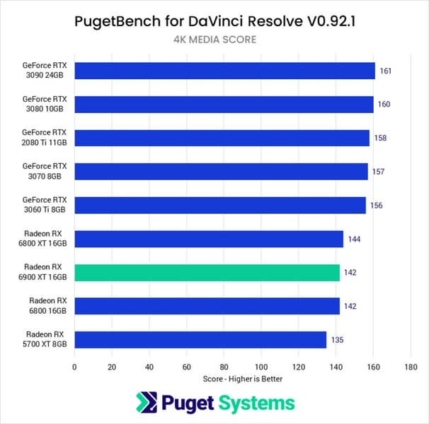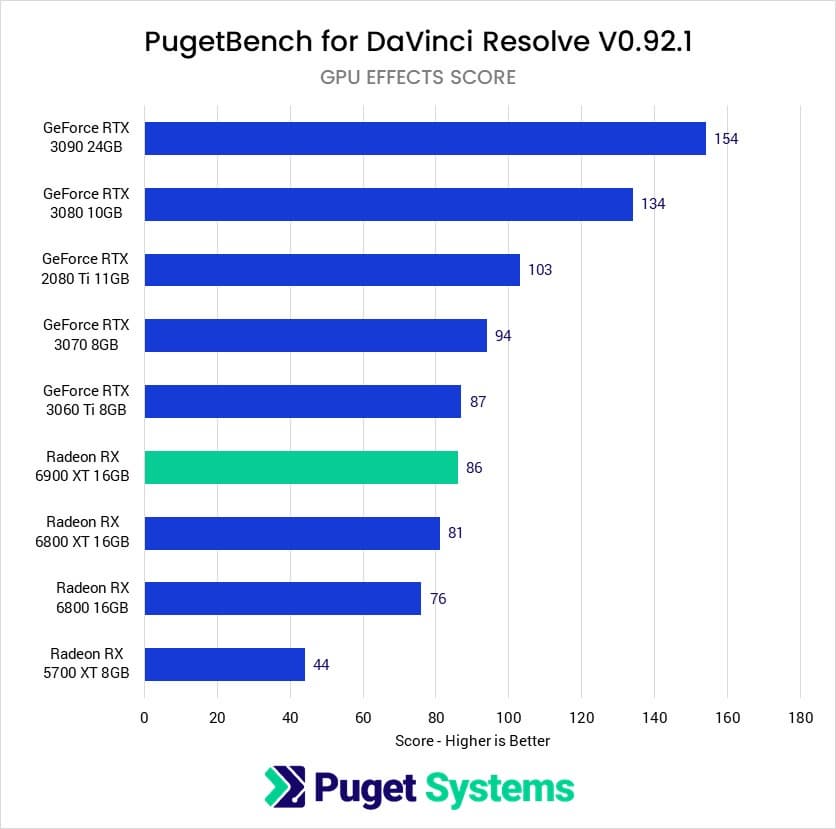 Но такие результаты карта AMD показывает в играх. А вот в DaVinci Resolve, как оказалось, флагман Radeon пока не способен показать впечатляющих результатов.