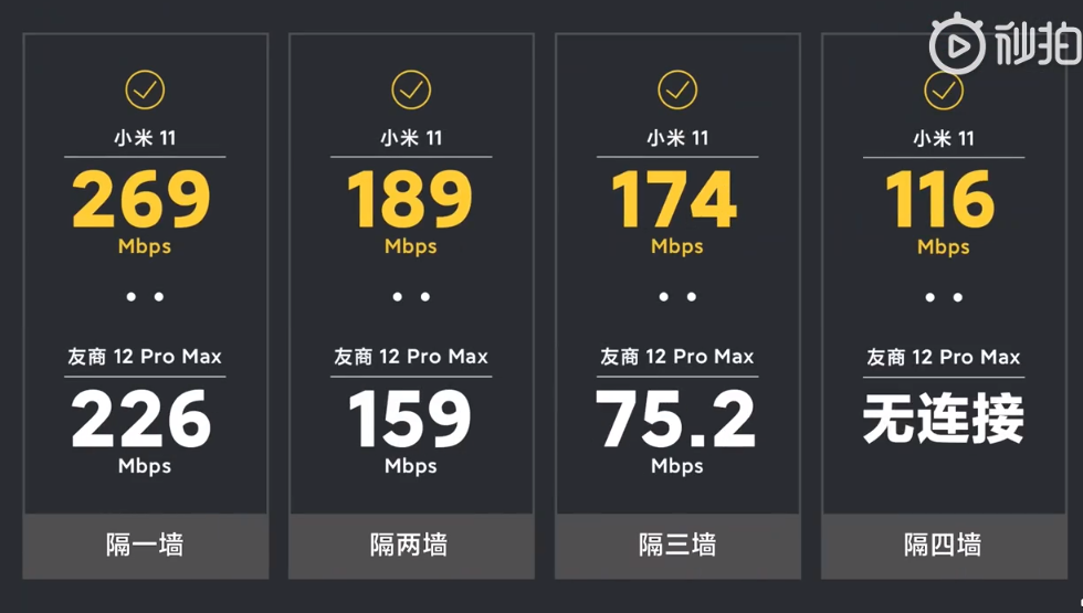Новый тест проводился в более сложных условиях — при передаче сигнала через стену, и снова с использованием роутера AX6000. Как демонстрирует нам официальный ролик, разница в результатах оказалась просто огромна. Xiaomi Mi 11 оказался способен стабильно принимать сигнал за пять комнат по горизонтали.