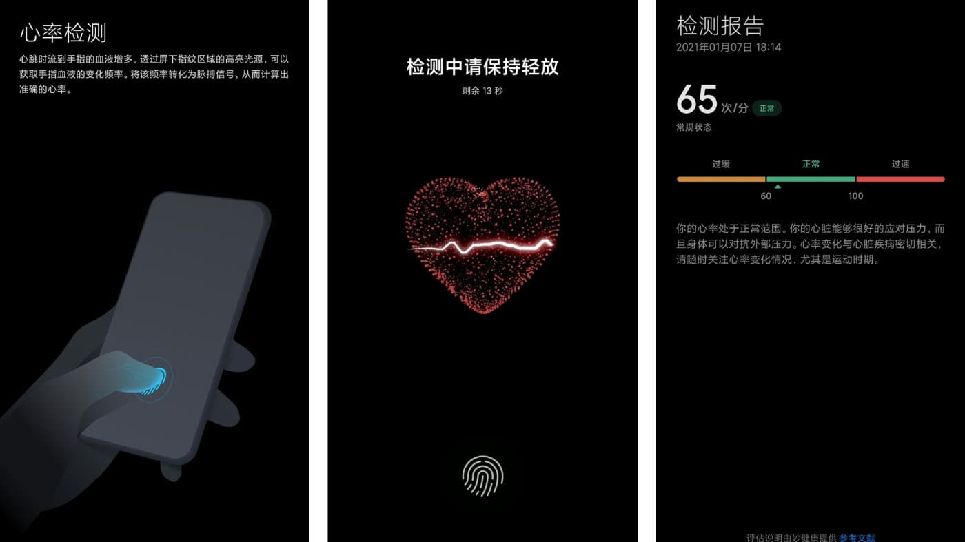 Теперь же появились подробности на этот счёт. По официальным данным, функция замеры частоты сердечных сокращений грамотно интегрирована в подэкранный сканер отпечатков пальцев без добавления дополнительного оборудования или увеличения толщины корпуса.