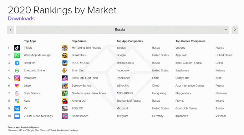 Аналитическая компания App Annie подвела итоги мобильного рынка приложений 2020 года. Загрузки приложений выросли на 7% и поставили рекорд в 218 миллиардов.