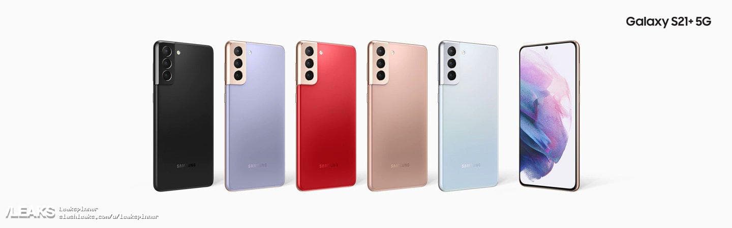 Также были опубликованы новые официальные изображения Samsung Galaxy S21, Samsung Galaxy S21+ и Samsung Galaxy S21 Ultra во всех доступных цветах.