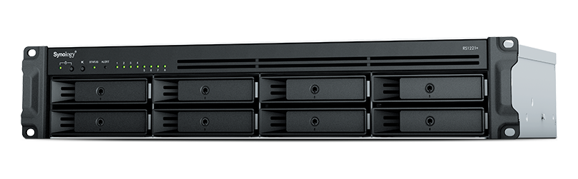 Компания Synology объявила о выпуске стоечных серверов хранения RackStation RS1221+ и RS1221RP+. Эти серверы форм-фактора 2U с восемью отсеками стали первыми моделями серии RackStation на процессоре AMD Ryzen V1500B. По оценке Synology, по сравнению с предыдущей моделью RS1219+, построенной на процессоре Intel Atom C2538, вычислительная производительность стала выше в 3,6 раза, производительность на операциях ввода-вывода с произвольным доступом в режиме чтения — в 3,8 раза (до 108 000 IOPS), а скорость последовательной записи — в 2,3 раза (до 1147 МБ/с). Это позволяет ускорить доступ к данным и выполнение задач резервного копирования, а также дает возможность одновременно работать большему числу пользователей и служб с сохранением высокой производительности.
