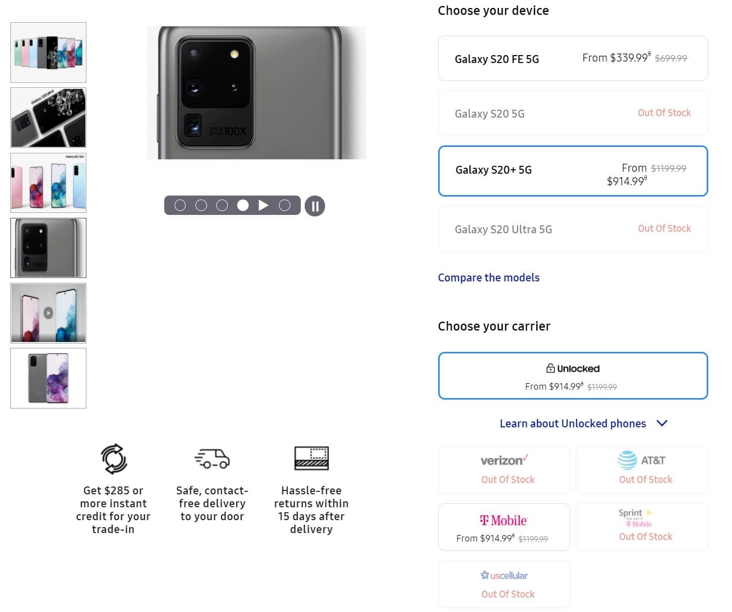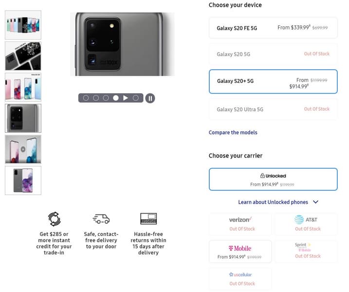 Galaxy S20 отсутствуют в наличии, например, на сайтах Samsung для США и Великобритании. В то же время, популярные британские ритейлеры Best Buy и Mobiles.co.uk вообще сообщают, что вся линейка Galaxy S20 «снята с продажи».