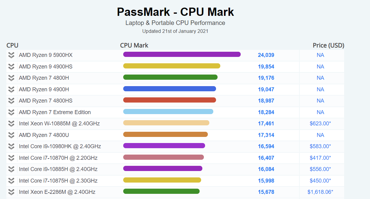 Если судить по рейтингу ПО PassMark, то это вообще самый быстрый мобильный CPU. Правда, в рейтинге нет Ryzen 9 5980HX, но разница будет мизерной.