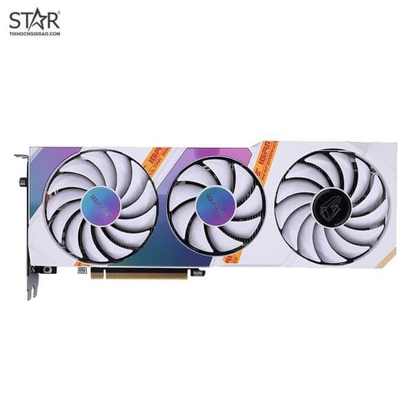 Карта iGeForce RTX 3060 Ti Ultra White OC предсказуемо окрашена в белый цвет. Впрочем, сторонники минимализма будут разочарованы — на кожухе системы охлаждения и задней панели есть немало цветных пятен. Базовая частота GPU равна 1410 МГц, повышенная — 1665 МГц. Разгон упомянутой выше кнопкой повышает частоту до 1770 МГц. Размеры карты равны 315 х 131,5 х 56 мм.
