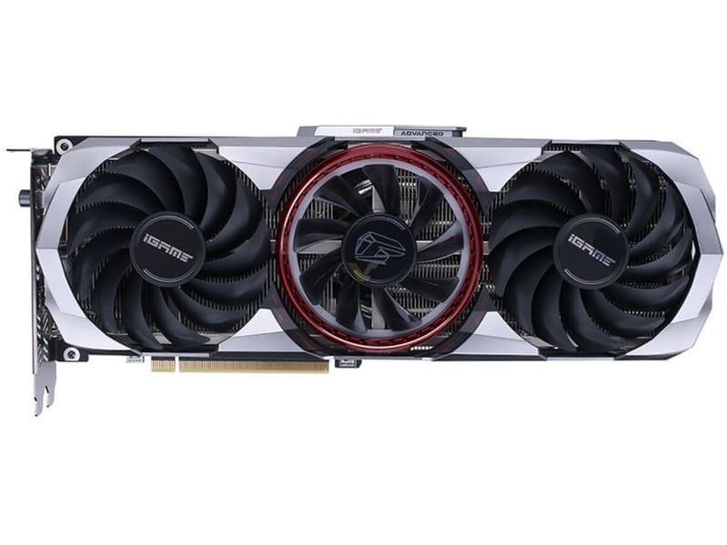 Что касается модели iGame GeForce RTX 3060 Ti Advanced OC, базовая и повышенная частоты у нее такие же, а при нажатии кнопки Turbo частота увеличивается до 1800 МГц. Размеры карты равны 315,5 х 131 х 53 мм.