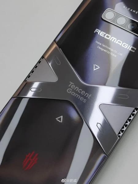 Первое живое фото указывает на необычное оформление. Тут и горизонтальный блок камер, от которого сейчас отказались, судя по всему, уже все, и необычная накладка с надписью Tencent Games, которая говорит о том, что новинка выйдет при участии китайского гиганта.