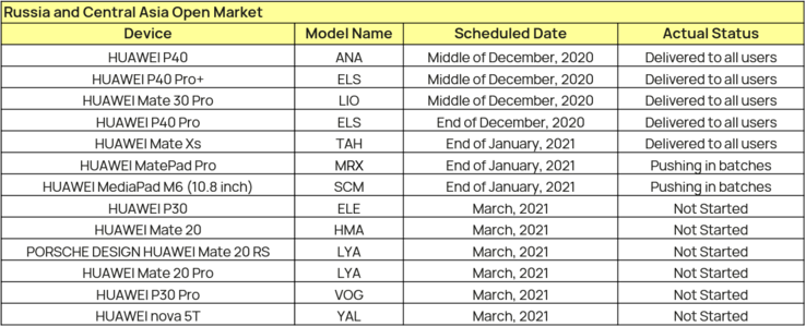 В Сети появилась новая версия графика обновления смартфонов Huawei до EMUI 11 в разных регионах. Нас, конечно же, в первую очередь интересует Россия и страны СНГ. Согласно нему, в данный момент обновления EMUI 11 получают два планшета — MatePad Pro и MediaPad M6 с экраном диагональю 10,8 дюйма.