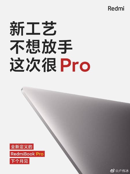 Ранее Лу Вейбинг отметил, что компания потрудилась над созданием нового дизайна, а также добавил, что новый ноутбук RedmiBook Pro будет мощным и производительным. Также известно, что ноутбук получит камеру в привычном месте над экраном.