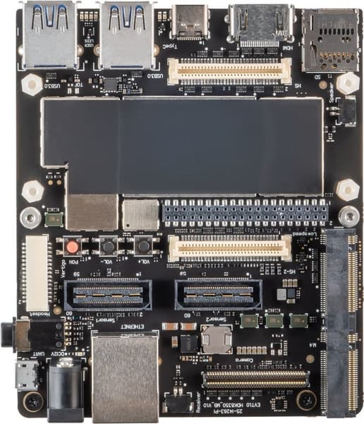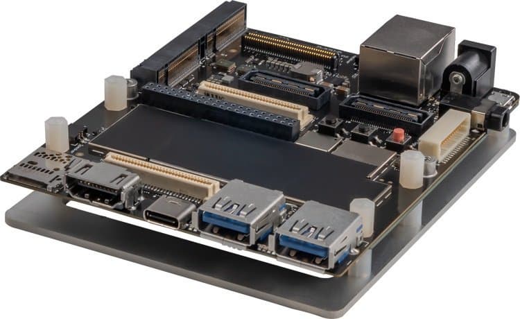 Габариты платформы – 100 х 85 мм. Помимо встроенной SoC Snapdragon 888 она содержит адаптеры Gigabit Ethernet, Wi-Fi 6 (802.11ax), Bluetooth 5.1 и NFC, а также 12 ГБ оперативной памяти LPDDR5 и 256 ГБ флэш-памяти UFS 3.0. Мало энергонезависимой памяти? Можно использовать карты microSD или SSD – для установки последних предусмотрено два слота M.2. Среди интерфейсных разъемов – стандартный порт для наушников диаметром 3,5 мм, два USB 3.0 и один USB 3.1 Type-C, а также HDMI 2.0.