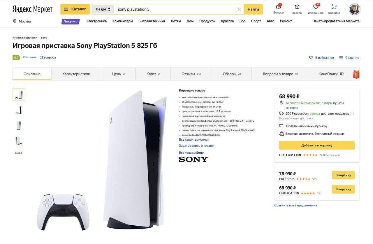 Команда Яндекс.Маркета объявила о запуске эксперимента с карточками товаров. Первыми ласточками стали игровая приставка Sony PlayStation 5 и Яндекс.Станция.