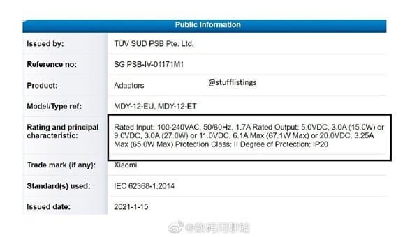 Всё дело в том, что Xiaomi сертифицировала новое зарядное устройство, выдающее мощность 67 Вт. По предварительным данным (да и по логике тоже), оно адресовано некому новому мощному смартфону, ну а самый мощный из ближайших – это как раз Mi 11 Pro. Если слух окажется верным, то новинка будет заряжаться быстрее Mi 11, но до Mi 10 Ultra никак не дотянет.