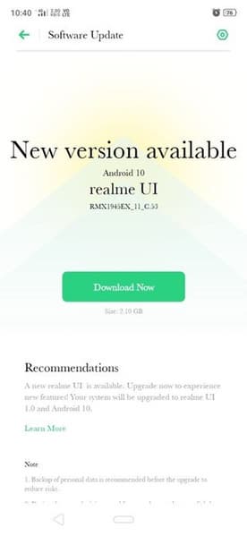 Прошивка имеет размер 2,1 ГБ для устройств с Android 9 Pie и 164 МБ для тех, кто ранее тестировал Realme UI 1.0. На данный момент она доступна небольшому количеству пользователей. Ожидается, что в ближайшие дни распространение расширит охват.