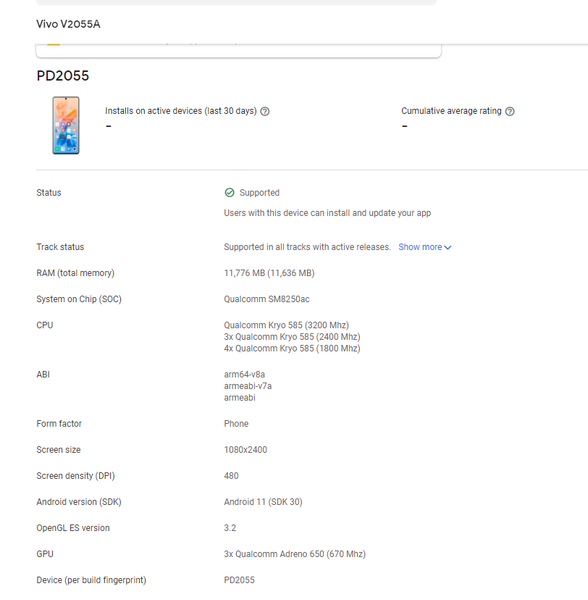 Судя по многочисленным утечкам, эта платформа будет весьма популярной. К примеру, на ней будет построена новинка Vivo с каталожным номером V2055A. Она уже засветилась в Google Play Console, благодаря чему стали известны её параметры.