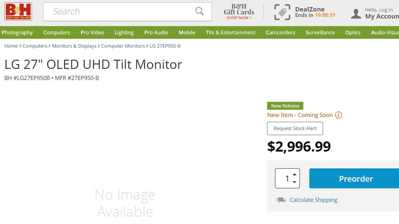 Лишь вчера мы писали, что LG Electronics планирует выпустить монитор с 27-дюймовым экраном OLED, а сегодня в магазине B&H появилась страница этой новинки и возможность разместить предварительный заказ. Очевидно, стали известны такие ключевые данные, как название монитора и его цена.
