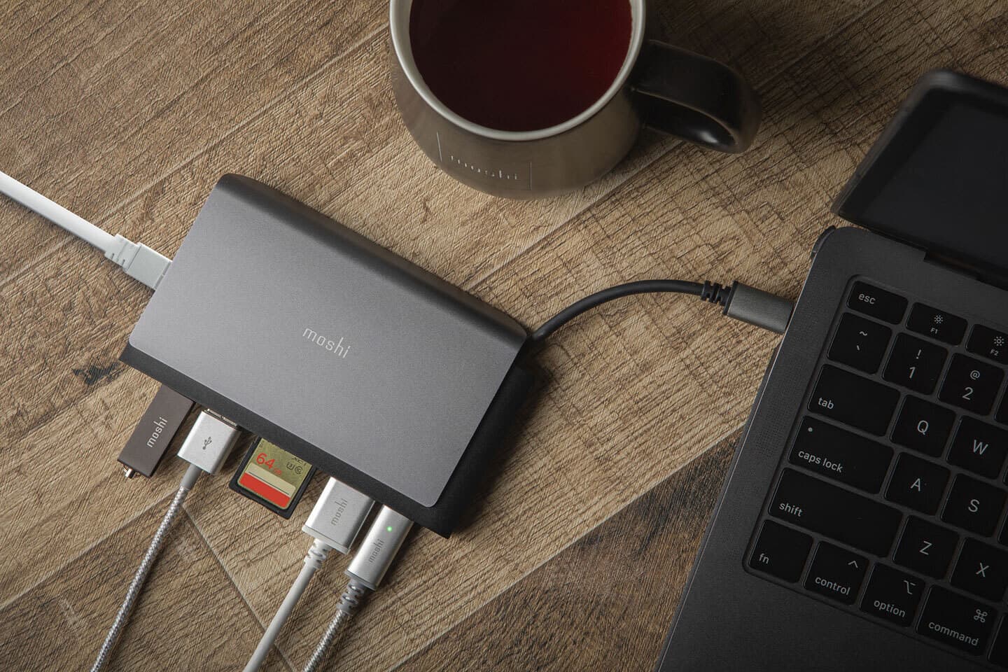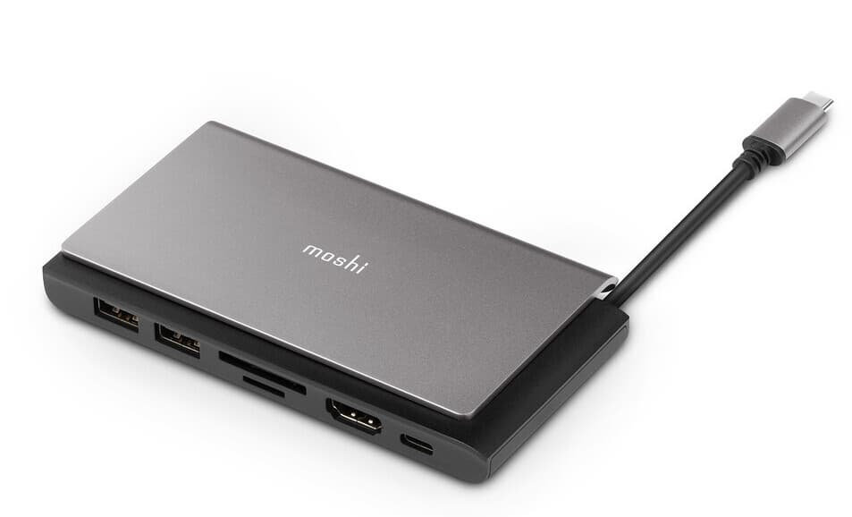 Ассортимент компании Moshi пополнило устройство Symbus Mini. Оно подключается к хосту с помощью соединителя USB-C. Если в качестве хоста выступает ноутбук, он может рассчитывать на питание (до 70 Вт). В конфигурацию Symbus Mini входят слоты для карт SD и microSD с поддержкой UHS-1, два порта USB 3.1 Gen 1 и по одному порту HDMI и Gigabit Ethernet. Другими словами, это док-станция, хотя сам производитель называет Moshi Symbus Mini портативным концентратором USB-C. Устройство совместимо с Thunderbolt 3 и поддерживает Plug and Play. Установка драйверов не требуется.