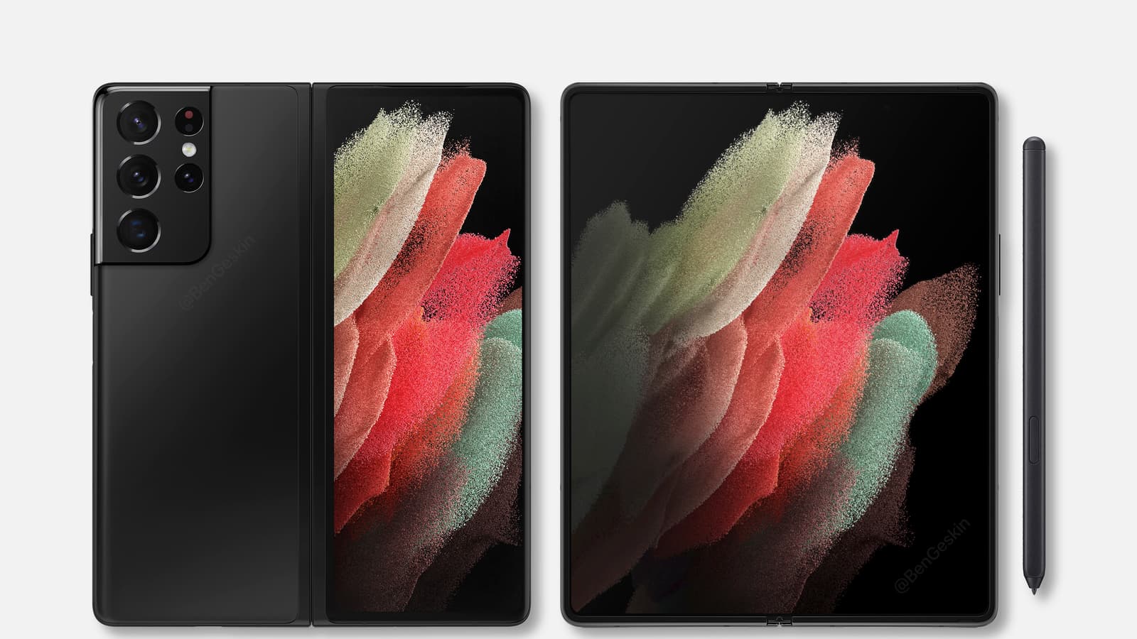 Ранее известный инсайдер и дизайнер Бен Гескин (Ben Geskin) выложил первые рендеры складного смартфона Samsung Galaxy Z Fold 3, которые были созданы на базе утечек и имеющейся в Сети информации. Судя по этому изображению, в сложенном состоянии сзади смартфон будет напоминать Samsung Galaxy S21 Ultra благодаря блоку основной камеры. Кроме того, он тоже получит стилус. Ранее поддержки стилуса не было ни в одном складном смартфоне компании. Стоит отметить, что на этом рендере фронтальная камера врезана в экран.
