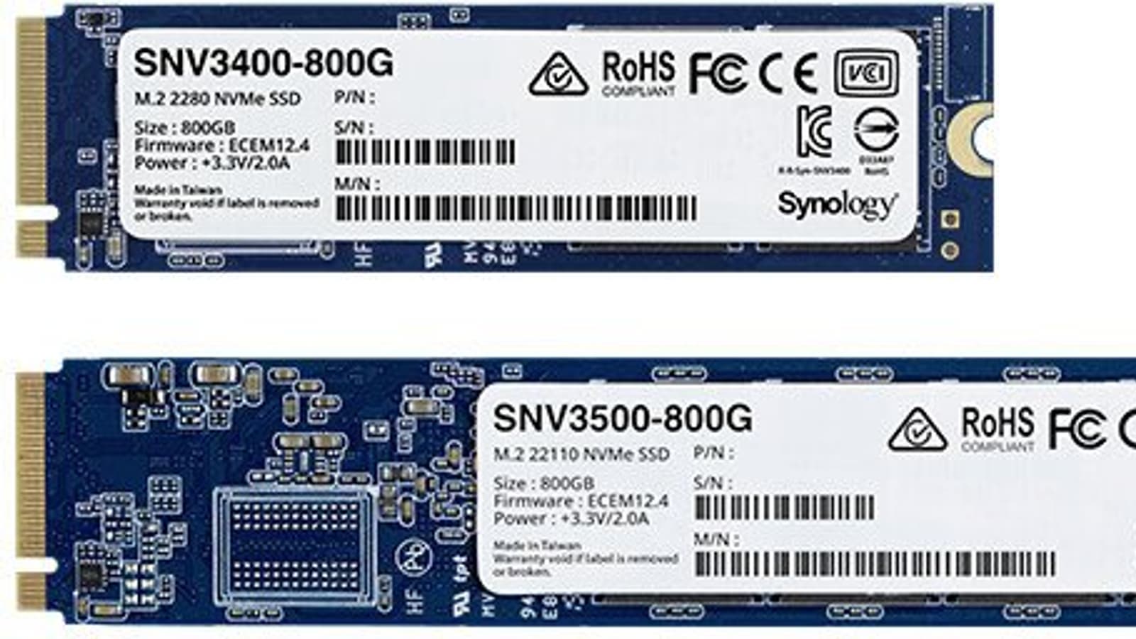 Напомним, первые SSD типоразмера M.2 с интерфейсом PCIe 3.0 x4 компания Synology представила летом прошлого года. Это были модели SNV3400 и SNV3500 типоразмера M.2 2280 и M.2 22110 соответственно. Оба накопителя были объёмом 400 ГБ, а различие между ними заключалось в наличии защиты от потери данных при сбое питания в модели SNV3500.