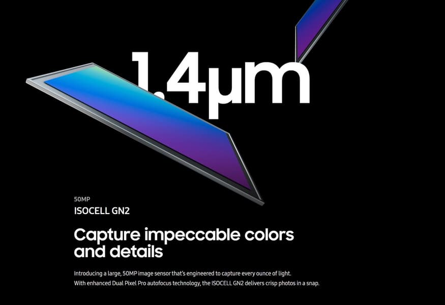 Технология Dual Pixel Pro обеспечивает «самую совершенную» систему Samsung фазового автофокуса в истории. Используются два фотодиода рядом друг с другом в каждом пикселе, обеспечивая скоростную фокусировку. В отличие от Dual Pixel, решение также предлагает всенаправленную фокусировку за счет разделения пикселей не только по вертикали, но и по диагонали.
