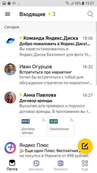 Яндекс расширил функциональность своего нового универсального сервиса Яндекс.Почта 360. Теперь он стал доступен в мобильных приложениях Яндекс.Почты и Яндекс.Диска.