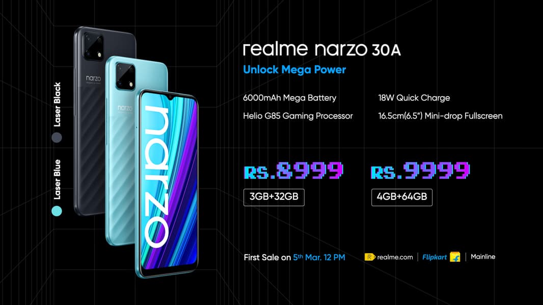 Помимо смартфона Realme Narzo 30 Pro производитель также анонсировал бюджетную модель Realme Narzo 30A, которая получила аккумулятор увеличенной ёмкости и длительное время работы без подзарядки.