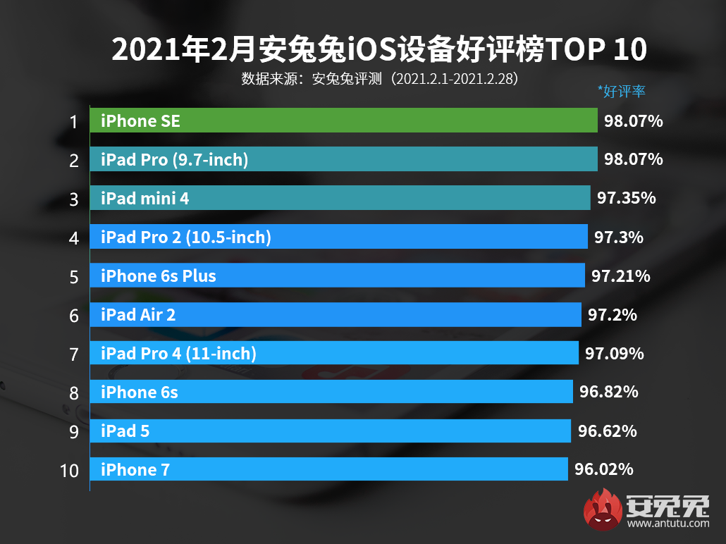 Команда популярного бенчмарка AnTuTu опубликовала свой ежемесячный рейтинг устройств на основе iOS, получивших самые высокие оценки удовлетворённости пользователей.