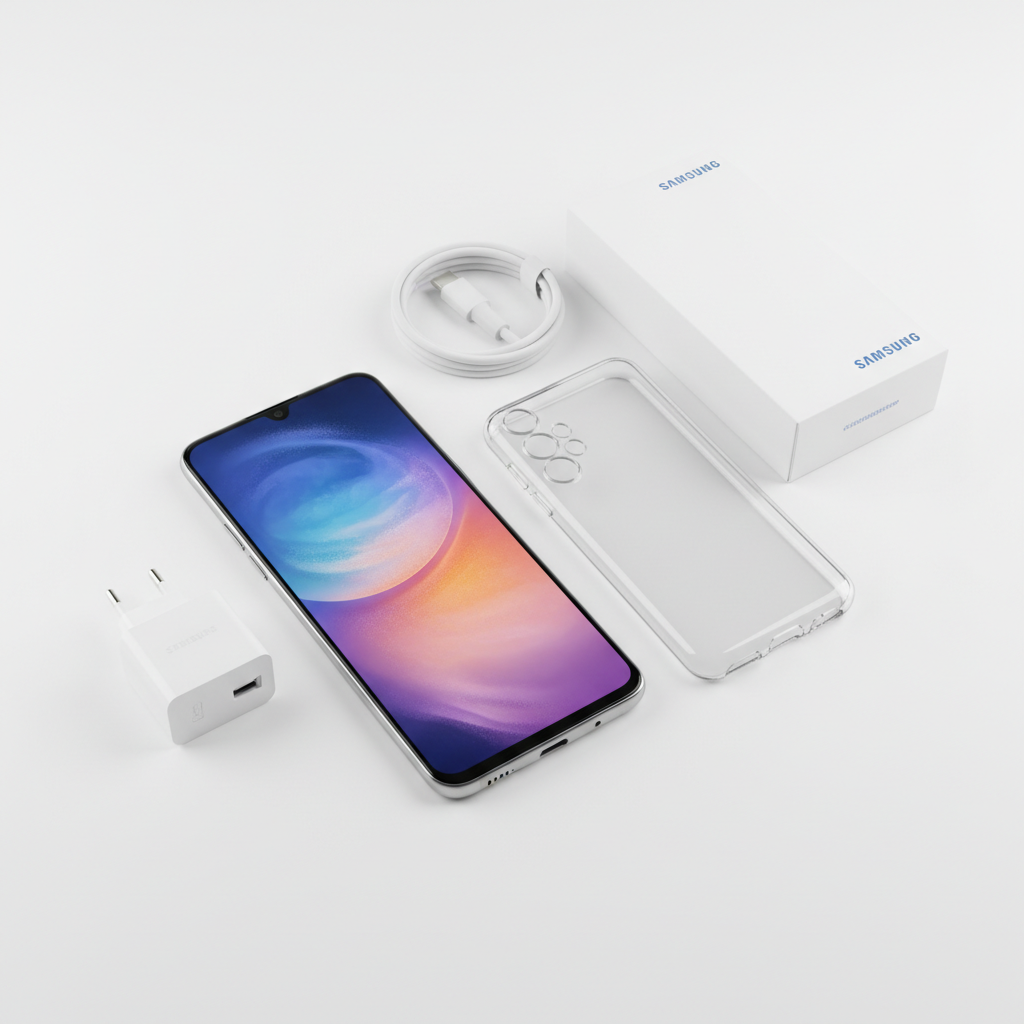 Как видно, в комплекте поставки Galaxy A52 есть и кабель, и блок питания. А еще есть защитный чехол. Надписи на защитной пленке экрана говорят о том, что смартфон получил экран Infinity-O, камеру с четырьмя датчиками (разрешением основного – 64 Мп) и системой оптической стабилизации. А самое главное – теперь у нас есть подтверждение полноценной защиты от пыли и воды: в соответствии со степенью IP67.
