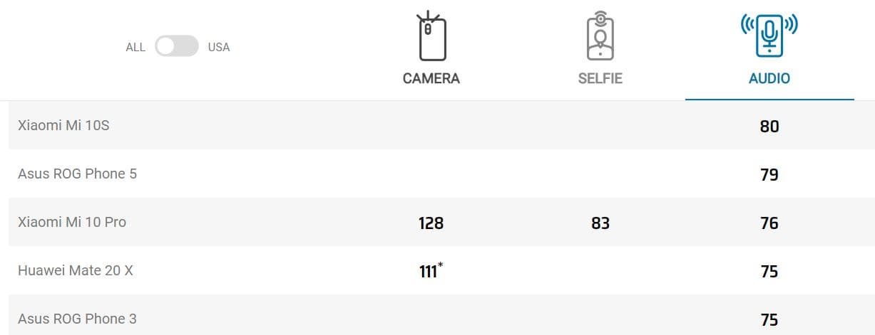 Нужно сказать, что Xiaomi было не сложно выпустить нового лидера аудиорейтинга DxOMark, ведь предыдущий рекордсмен, Xiaomi Mi 10 Pro, со своими 76 баллами был лучшим в своей категории целый год! Только совсем недавно Asus ROG Phone 5 сместил Mi 10 Pro на вторую позицию рейтинга, но Xiaomi быстро восстановила статус-кво.