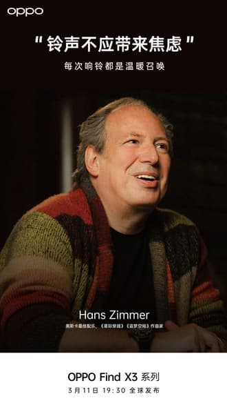 Между тем, Oppo привлекает звезд для продвижения серии Oppo Find X3 Pro. Оскароносный композитор Ханс Циммер (Hans Zimmer) создал уникальные рингтоны для данной серии телефонов. Кроме того, на мероприятии, посвящённом анонсу, также выступит актер Эдди Редмэйн (Eddie Redmayne).
