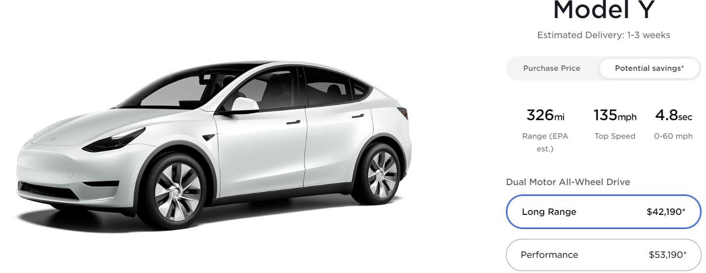Цена Tesla Performance Model Y осталась прежней.