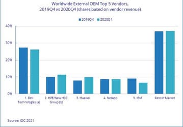 В четвёртом квартале 2020 года поставки серверов сократились на 3,0%, но выручка производителей выросла