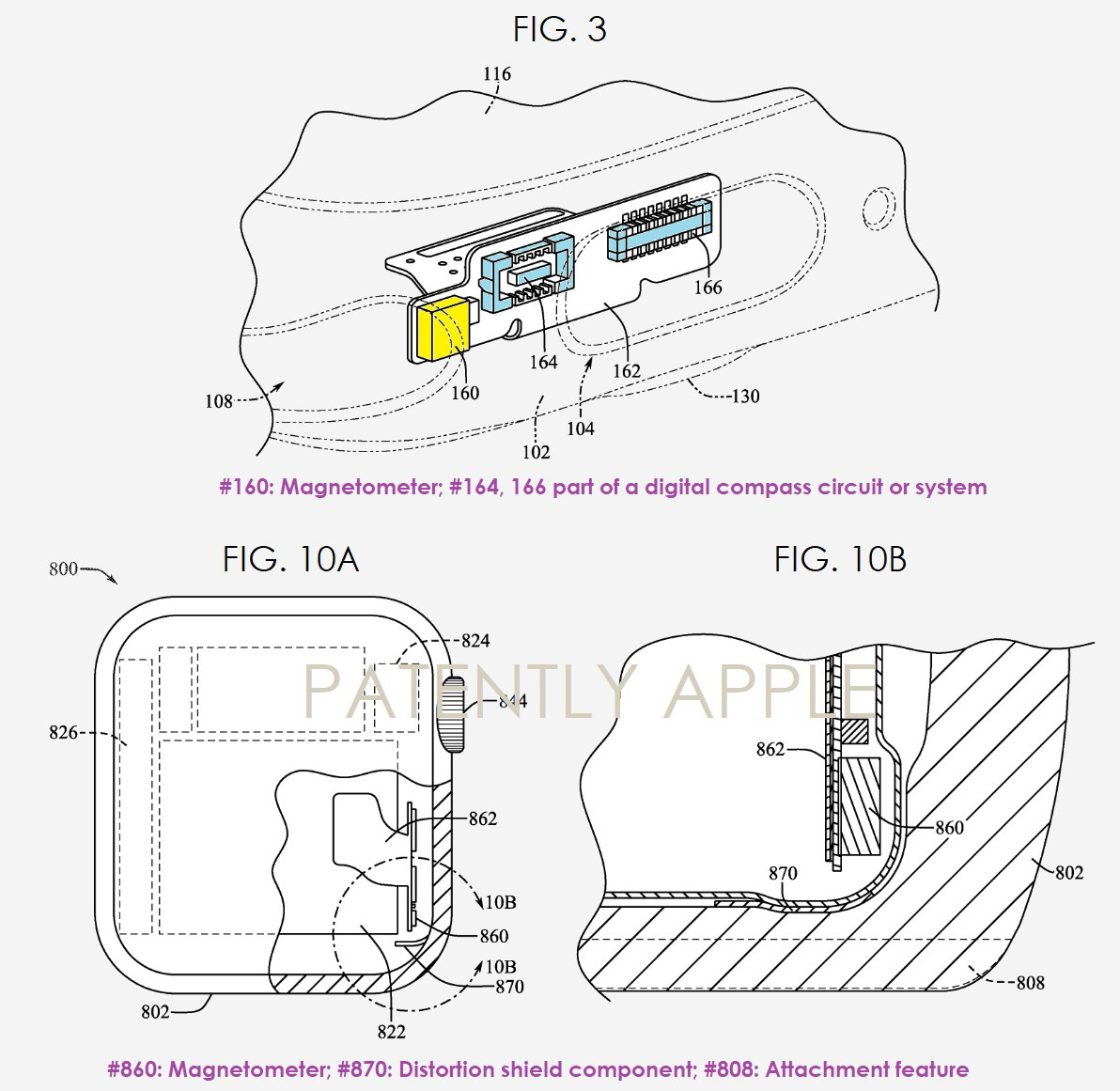 В заявке описаны некоторые изменения в магнитометре и конструкции Apple Watch, включая новый «экран для защиты от помех». Этот экран и другие улучшения могут вместе компенсировать влияние материалов, использованных в определенных ремешках.