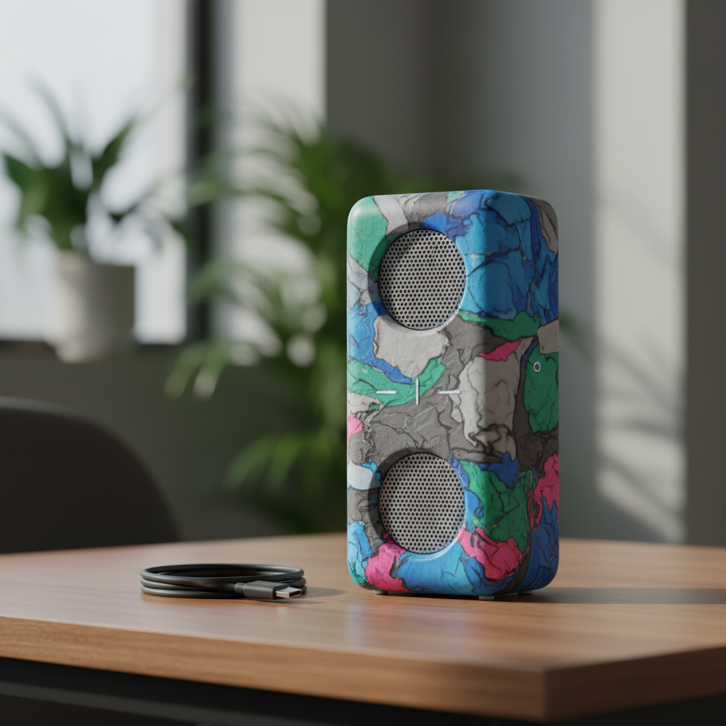 Ключевая особенность Gomi — использование в конструкции вторичного сырья. Говоря точнее, корпус колонки изготавливается из пластика, получаемого при переработке полиэтиленовых пакетов. По подсчетам создателей колонки, на один корпус нужно 100 пакетов для мусора.