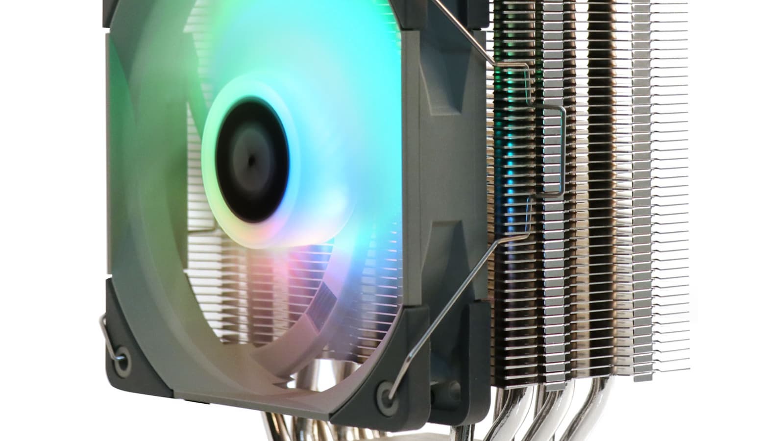 Скорость вращения вентилятора с гидродинамическим подшипником регулируется с помощью ШИМ. Максимальной скорости 1500 об/мин соответствует воздушный поток 112,5 м3/ч и уровень шума 25,6 дБА. Вентилятор украшен подсветкой ARGB.