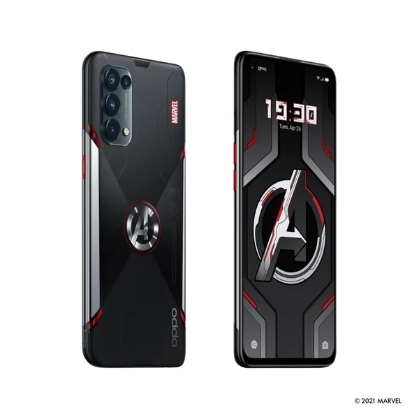 OPPO Reno5 Marvel Edition является специальной версией на базе Reno5 4G, который вышел в декабре прошлого года. Смартфон получил уникальный дизайн с логотипом «Мстителей» (Avengers) на задней панели. Комплектный чехол имеет логотип Marvel, на наушниках есть символы Железного Человека и Капитана Америки, логотип Avengers присутствует даже на скрепке для лотка SIM-карты.