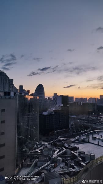 Также в Сети появился снимок, сделанный на камеру Black Shark 4 Pro. И хотя он сделан не в самых идеальных условиях (на рассвете или на закате, а не днём, когда много света), качество оставляет желать лучшего — уж очень много шумов. Однако это типично для игровых смартфонов: в них камера на вторых ролях. Водяной знак на снимке подтверждает количество датчиков основной камеры — их три.