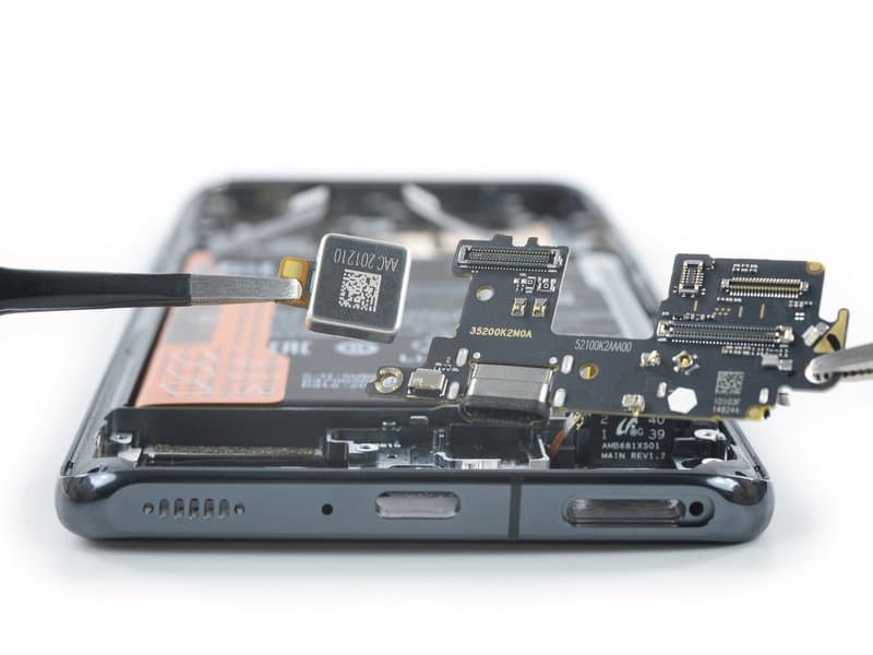 Для того, чтобы достать экран, пришлось воспользоваться специальным инструментом. Кроме того, во время этой процедуры велик риск повредить дисплей. Казалось бы, какая разница, если в ремонт обычно поступают смартфоны с повреждёнными дисплеями? Например, может случиться ситуация, при которой придётся заменить подэкранный сканер отпечатков пальцев, а это можно сделать только после извлечения самого дисплея. Что, в свою очередь, чревато его поломкой.
